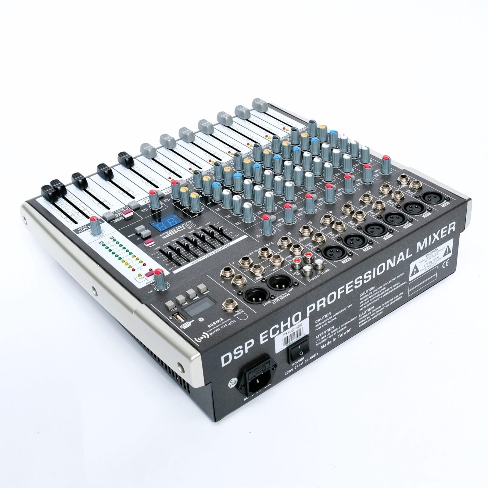 With its user-friendly layout, the EW808 DSP ECHO MIXER CONSOLE allows seamless control of multiple audio sources, including microphones, instruments, and playback devices. Each channel includes individual volume, EQ, and effect send controls, offering the flexibility needed for both beginners and professionals.