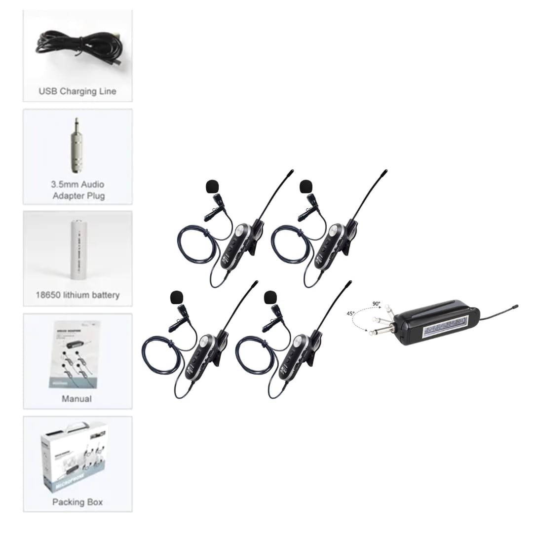 4 wireless lapel microphones for hands-free use