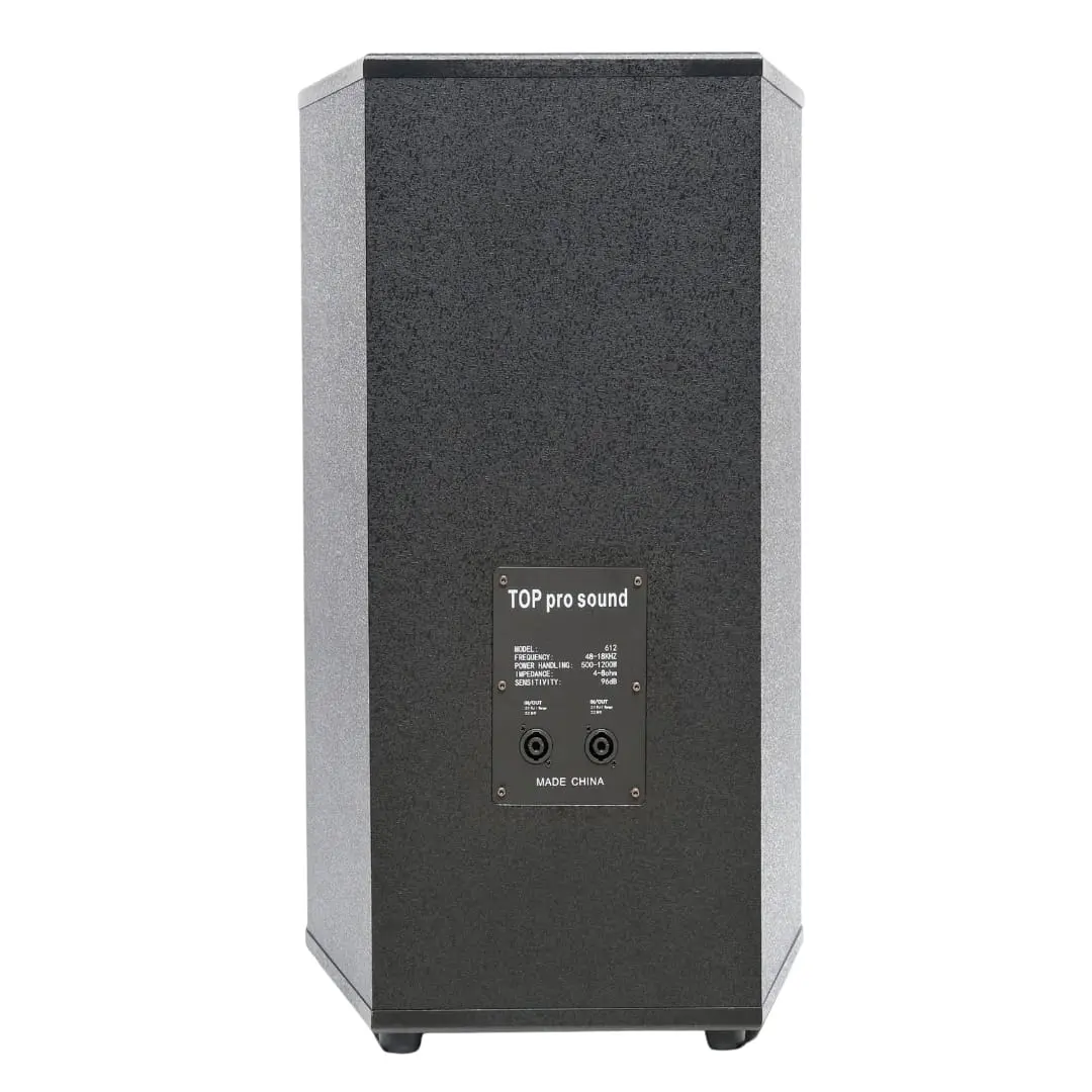 The TOP PRO SOUND 612 is a robust 12-inch wooden passive speaker designed to deliver warm, natural audio with excellent clarity and depth. Its solid wooden cabinet enhances sound resonance and minimises unwanted vibrations, making it ideal for live performances, public address systems, and venue installations.